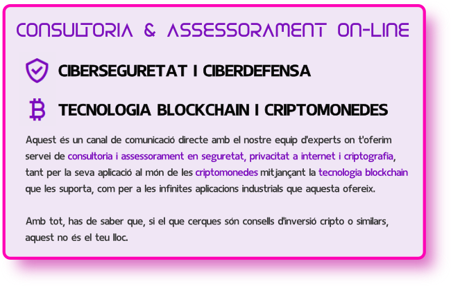 ASSESSORIA I CONSULTORIA SOBRE SEGURETAT, BLOCKCHAIN I CRIPTOMONEDES